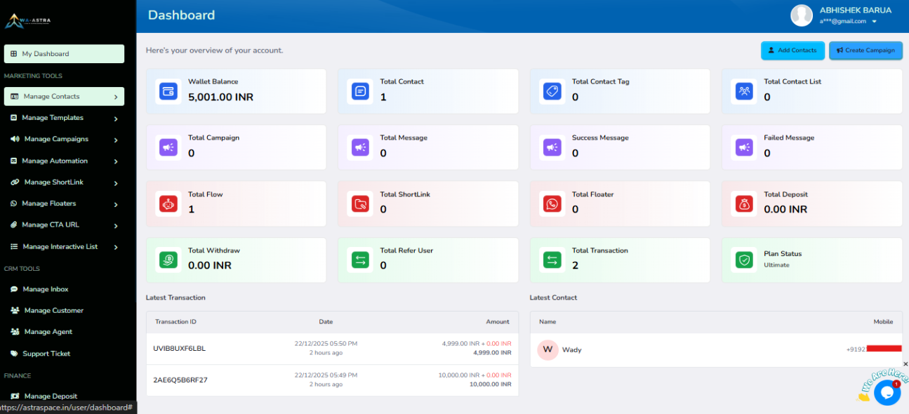 Wa-Astra is a complete cross-platform WhatsApp CRM and marketing tool that helps businesses manage conversations, automate customer engagement, and run marketing campaigns through WhatsApp.